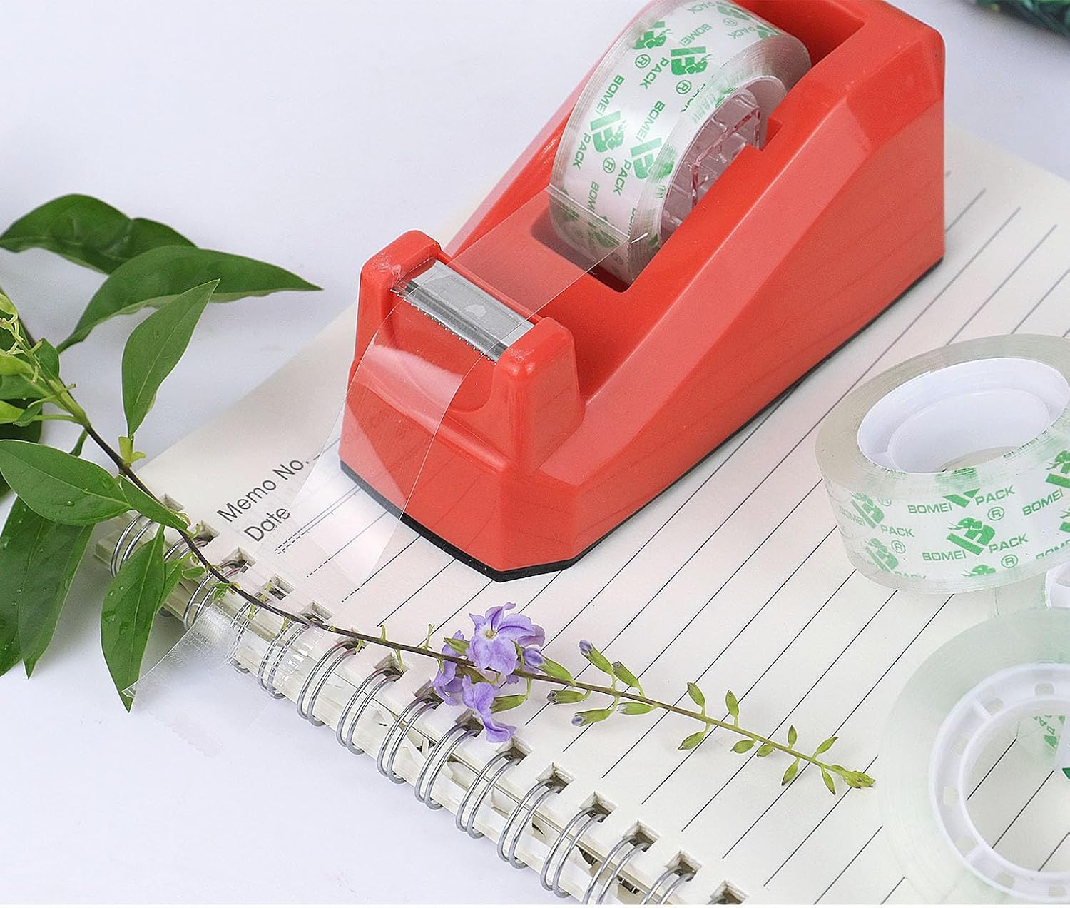 El tamaño del soporte de cinta transparente es de 4.72 pulgadas de largo, 2.56 pulgadas de ancho y 2.16 pulgadas de altura, el núcleo es de 1 pulgada.