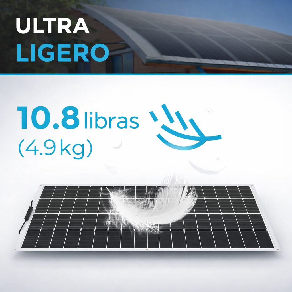 El panel solar monocristalino ligero Renogy de 600W mejora la eficiencia del módulo mientras minimiza su peso. Es la opción perfecta para cualquier sistema de energía solar fuera de la red eléctrica, especialmente para aplicaciones de transporte como vehículos recreativos y lanchas.